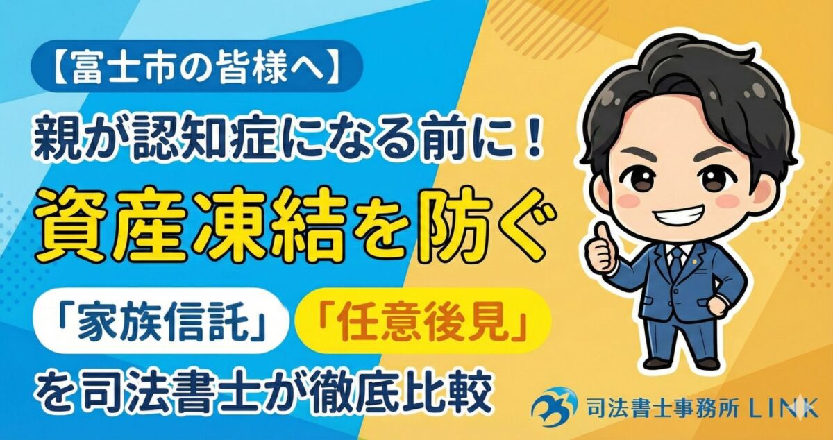 【富士市の皆様へ】親が認知症になる前に!資産凍結を防ぐ「家族信託」と「任意後見」を司法書士が徹底比較